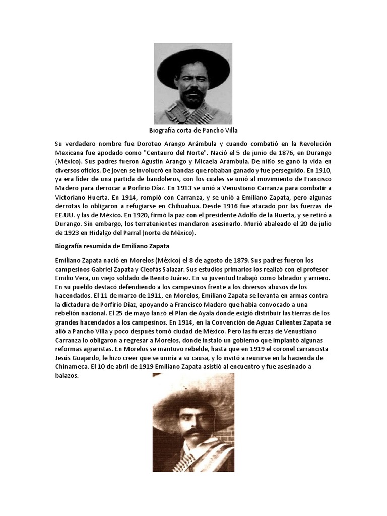 Primero pago a un maestro que a un general Pancho Villa Francisco Villa naci el 5 de junio de 1878 en La Coyotada una minscula poblacin del municipio de San Juan del Rio Durango. Madero que en su Plan de San Luis llam a alzarse en armas el 20 de noviembre de 1910 contra el rgimen de Porfirio Daz prometiendo a los campesinos la devolucin de las tierras injustamente arrebatadas durante la prolongada dictadura porfirista 1876-1911 que. Hola aqu les dejo la biografa de francisco villa con dedicatoria especial a los mas pequeos de la escuelaSgueme en mis redes sociales.